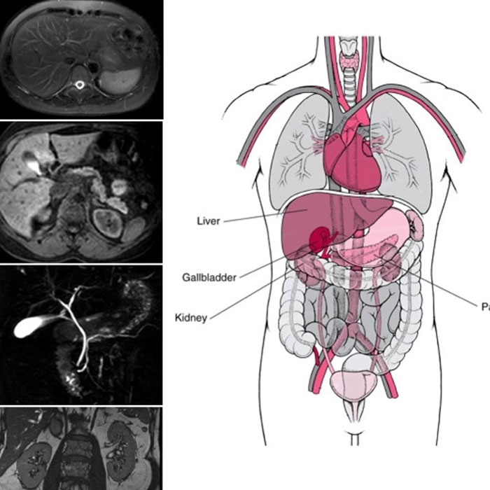 Üst abdomen, karın boşluğunun üst bölgelerinde yer alan karaciğer, safra kesesi, dalak, pankreas, böbrek, böbrek üstü bezleri(sürrenal) ve ana damarları içermektedir. Bu nedenle adlandırmalarda üst abdomen radyolojisi gibi farklı isimler kullanılsa da burada asıl hedeflenen bölgenin daha net bir şekilde belirtilebilmesidir.